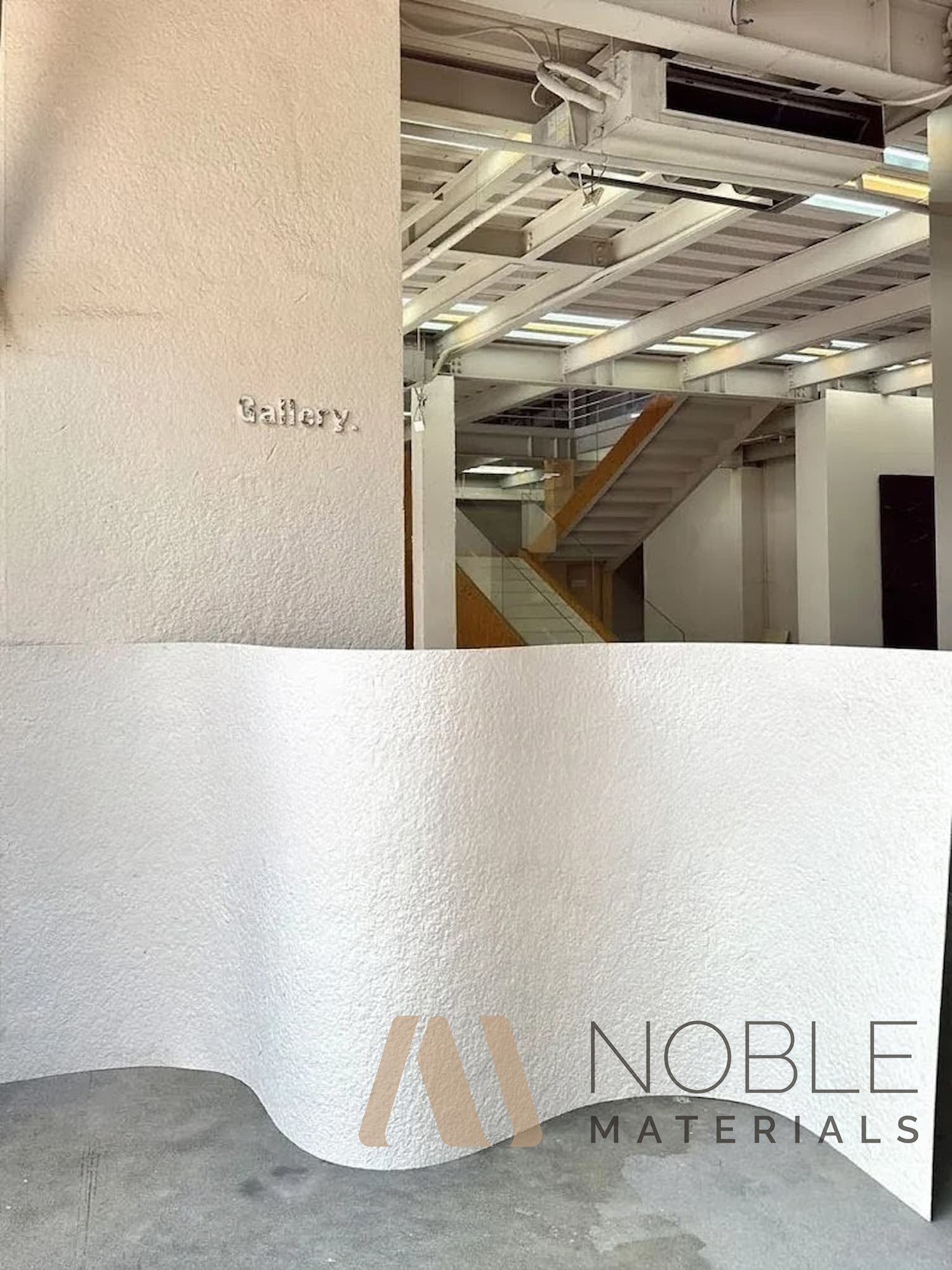 Dun, licht en flexibel steencomposiet paneel met reliëfstructuur.