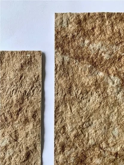 Dun, licht en flexibel steencomposiet paneel met reliëfstructuur.