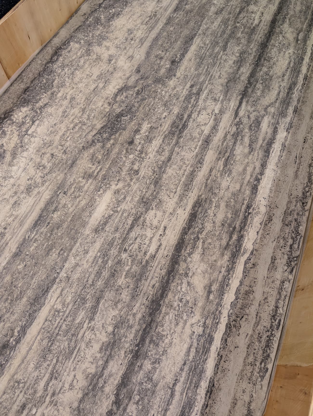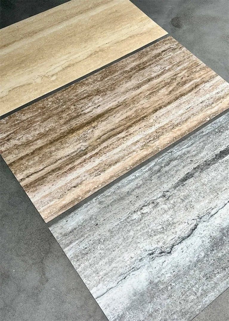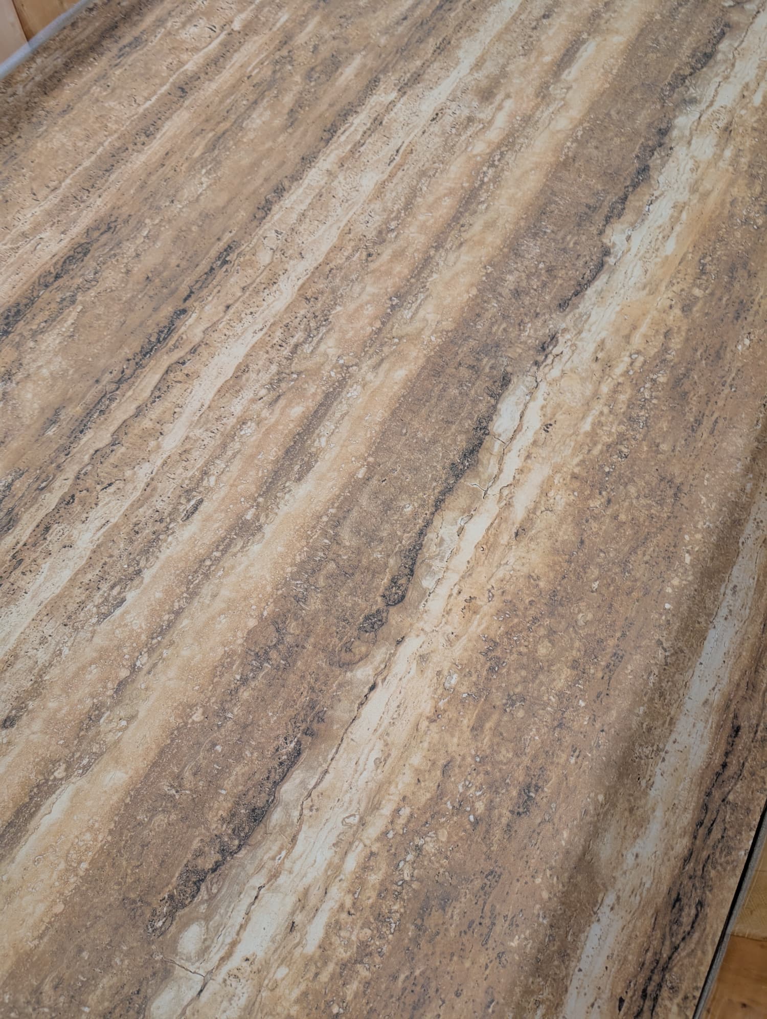 Dun, licht en flexibel steencomposiet paneel in travertijn look.