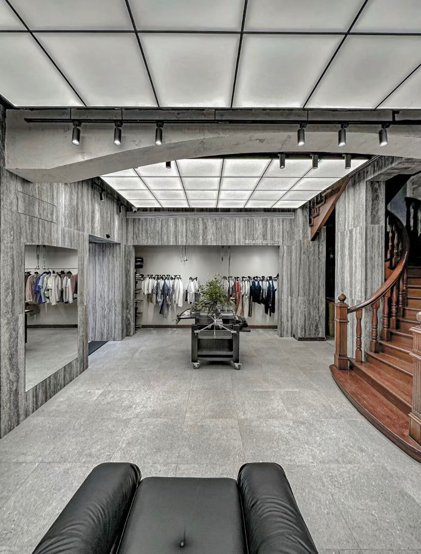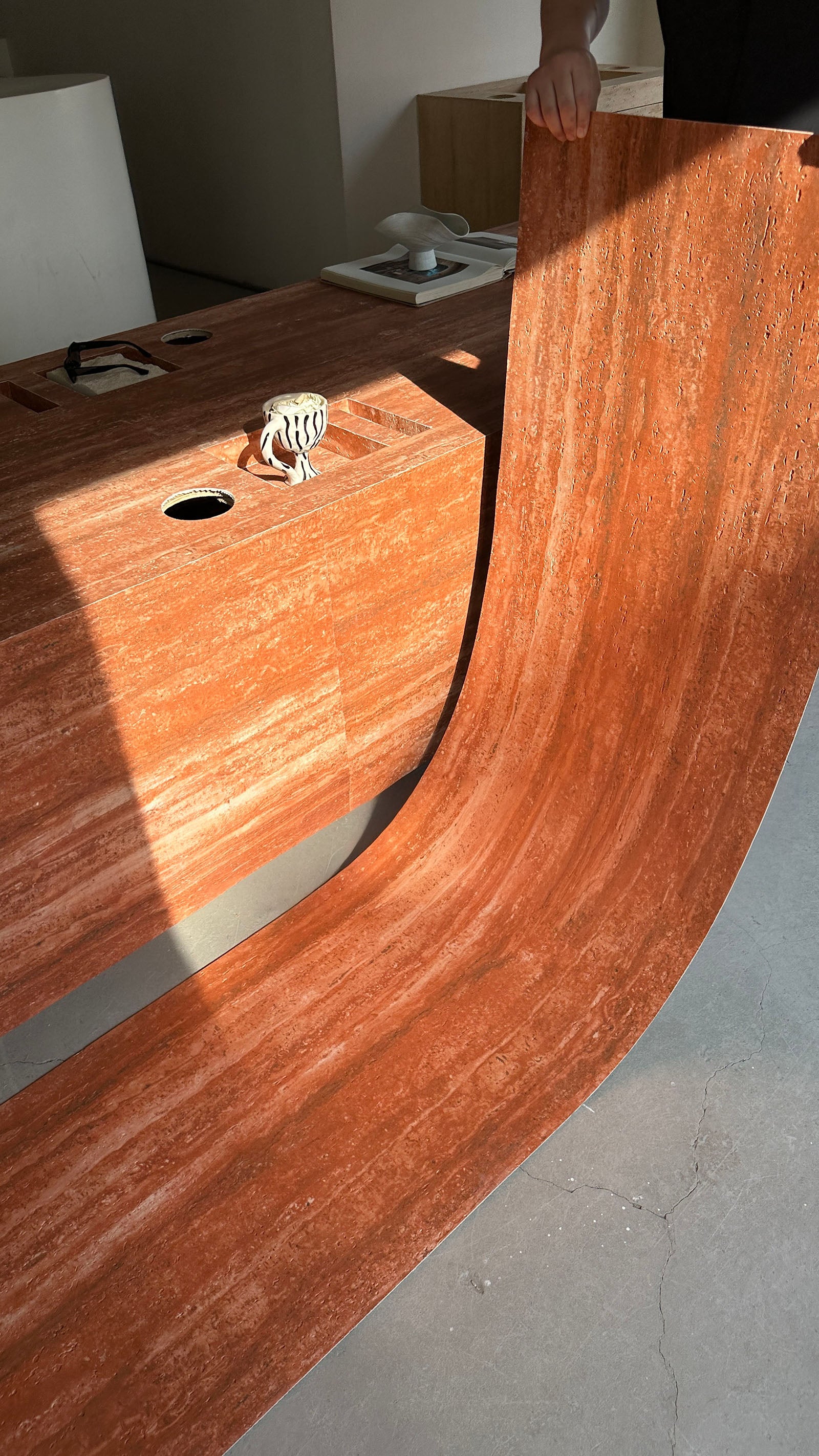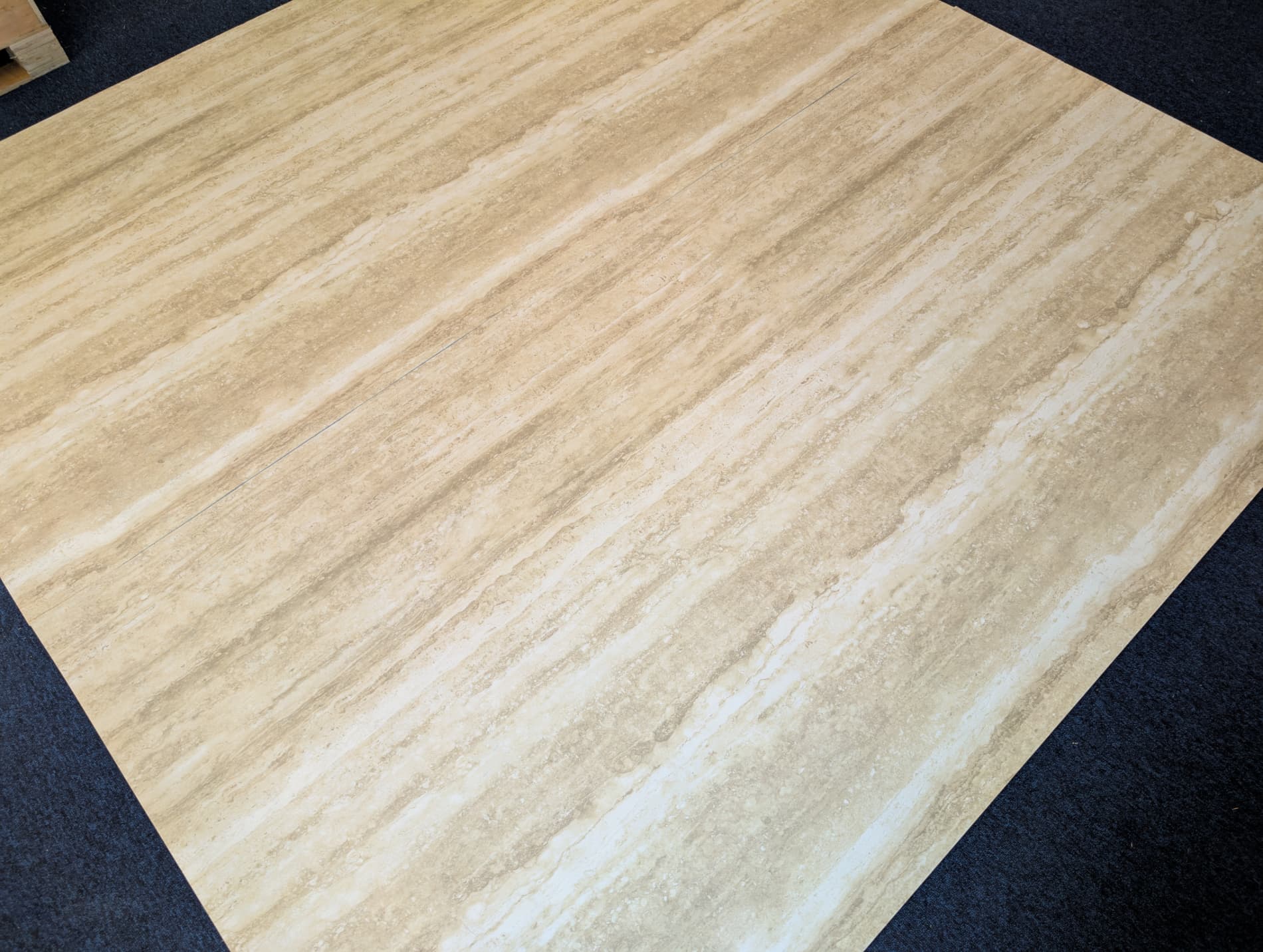 Dun, licht en flexibel steencomposiet paneel in travertijn look.