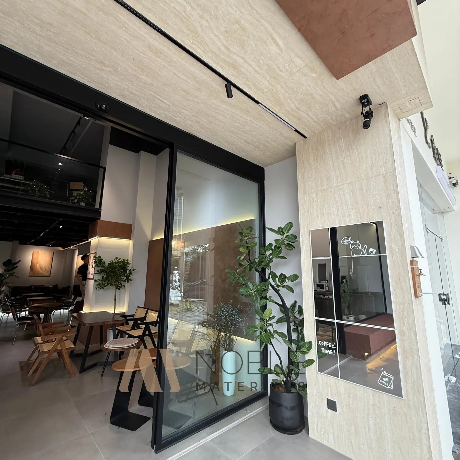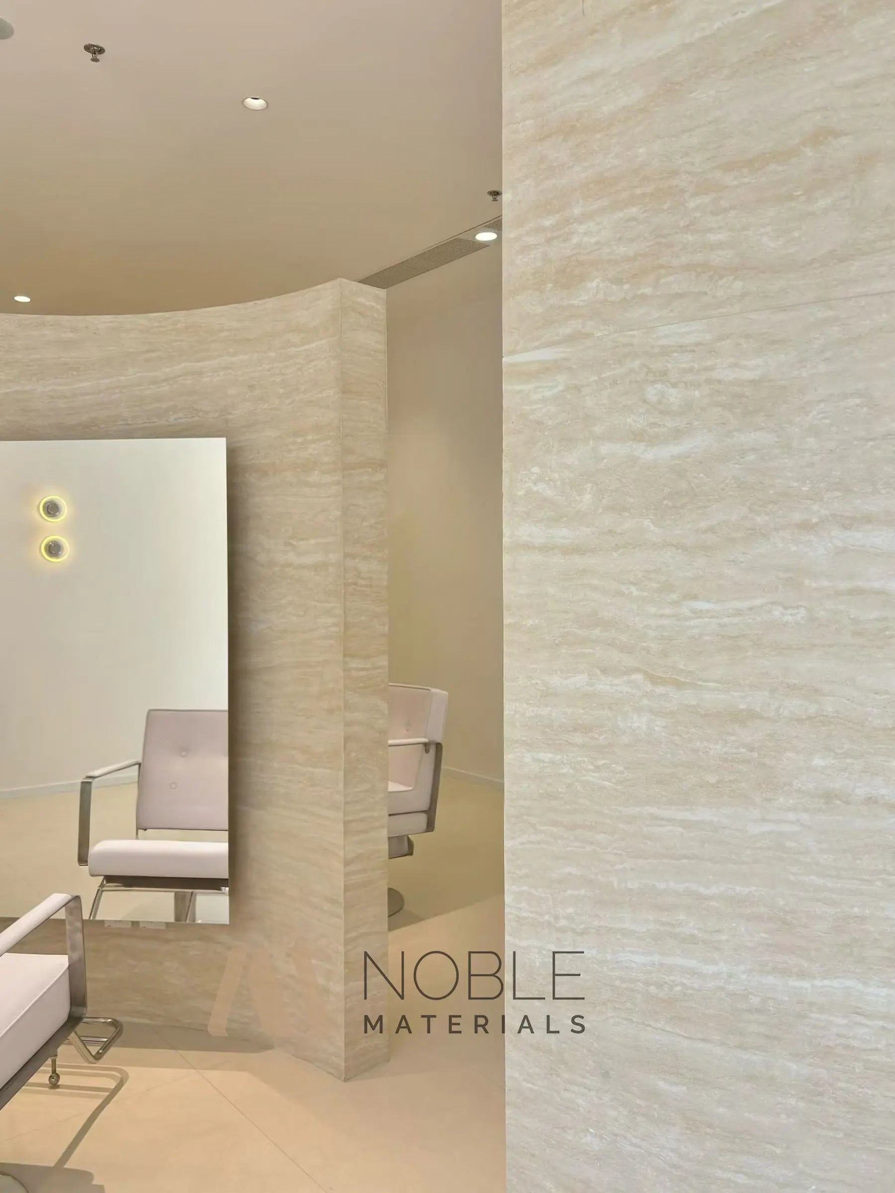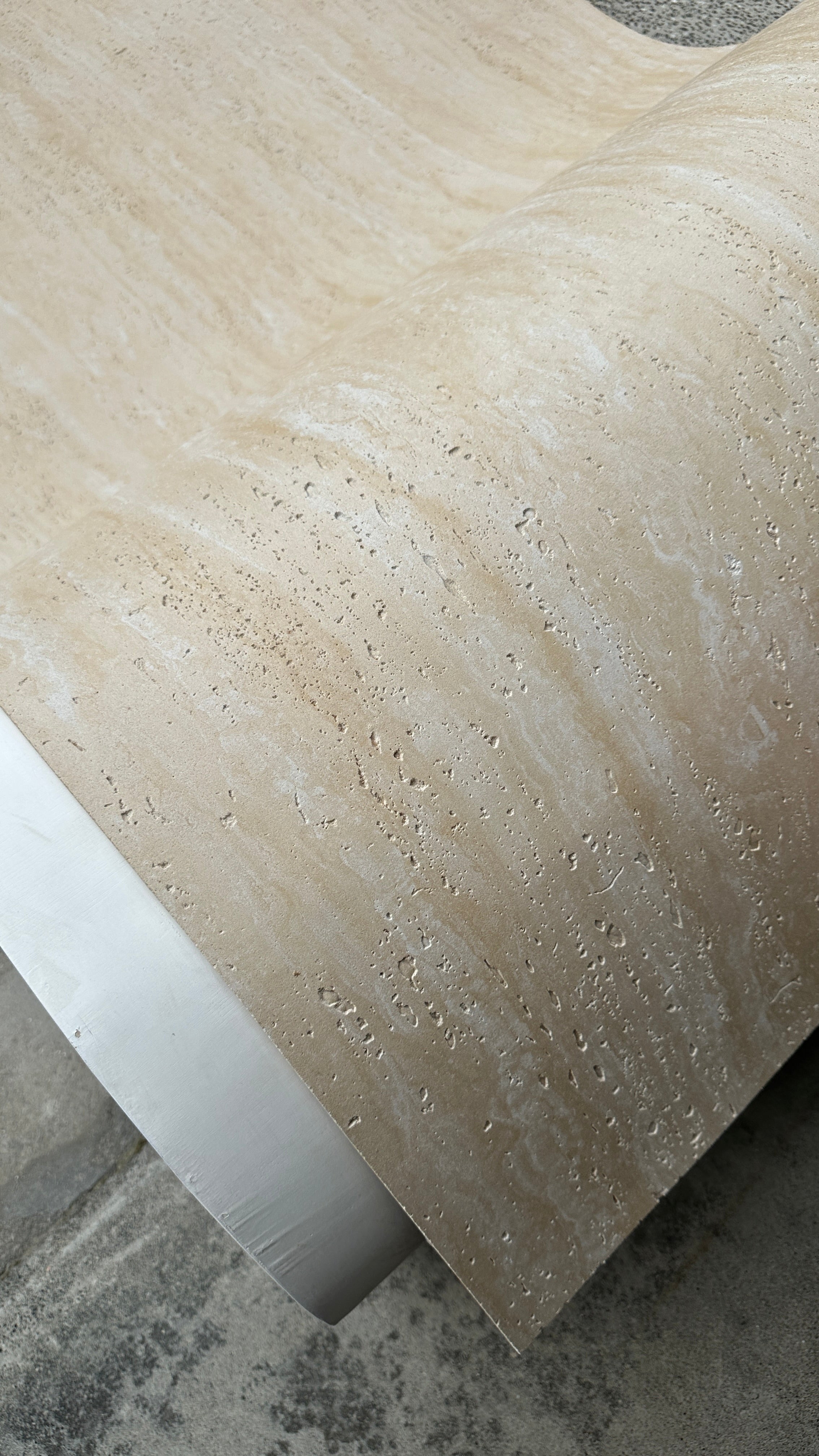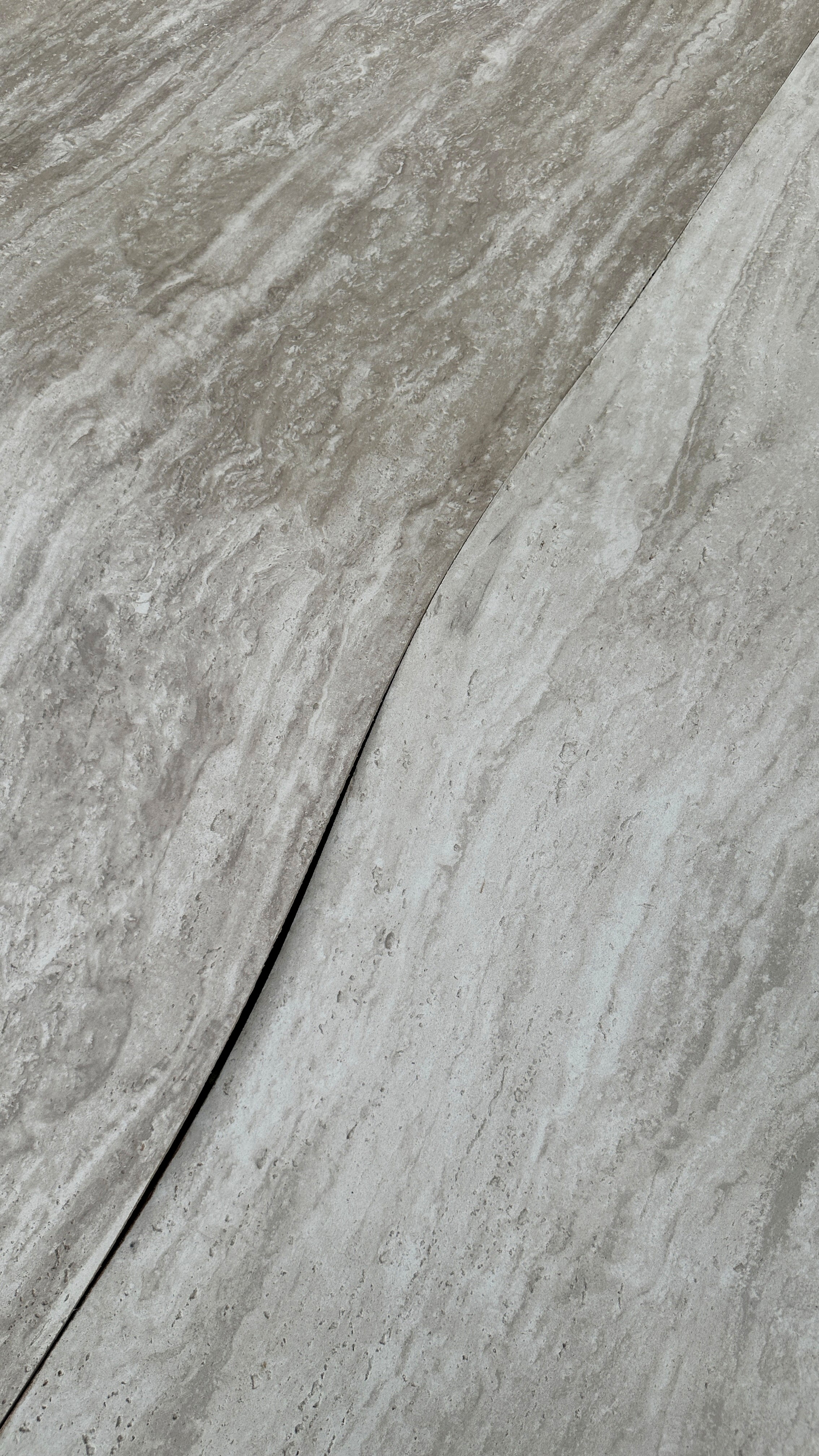 Dun, licht en flexibel steencomposiet paneel in travertijn look.