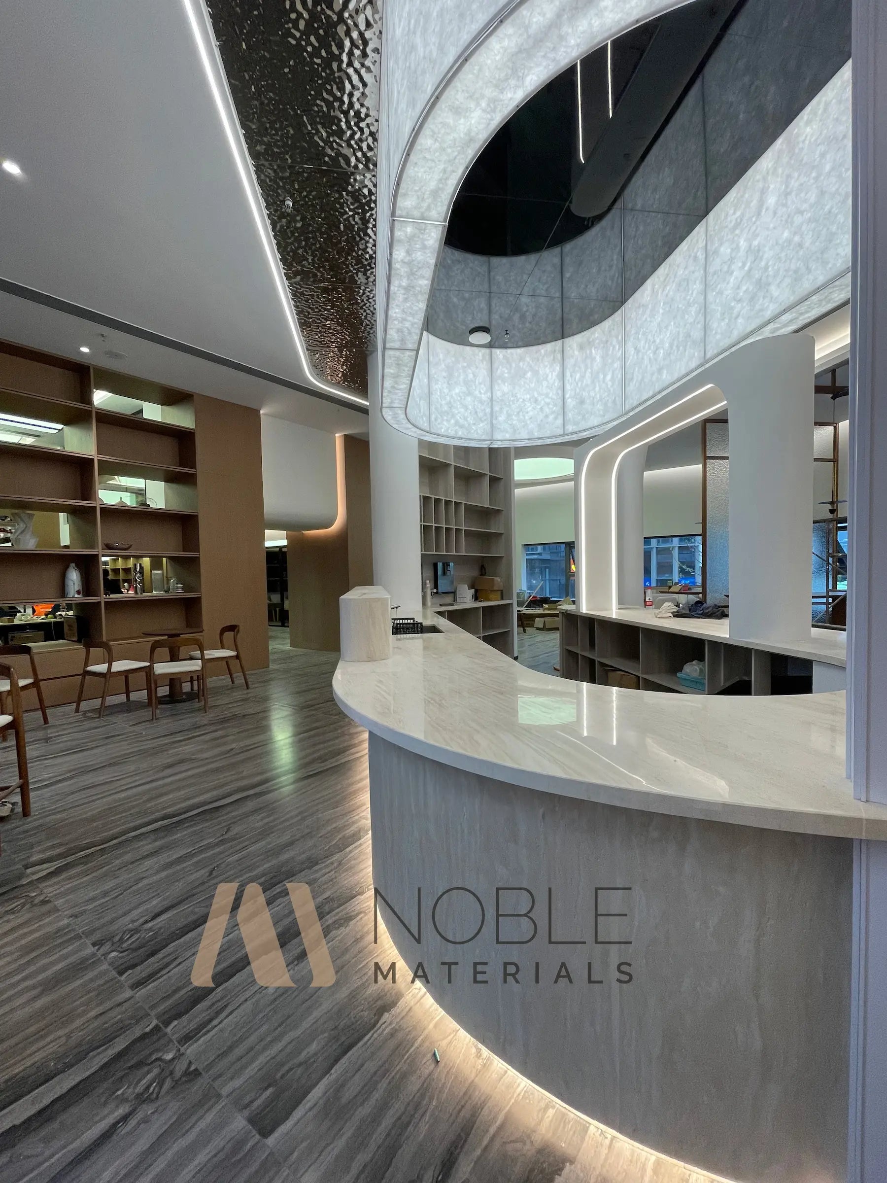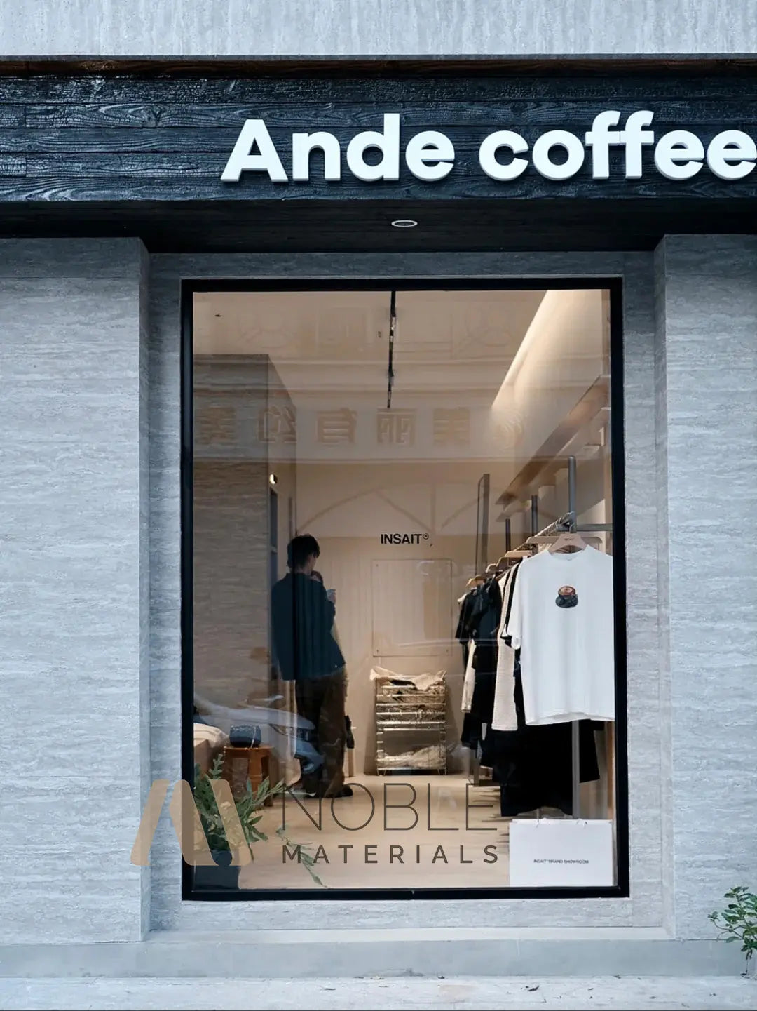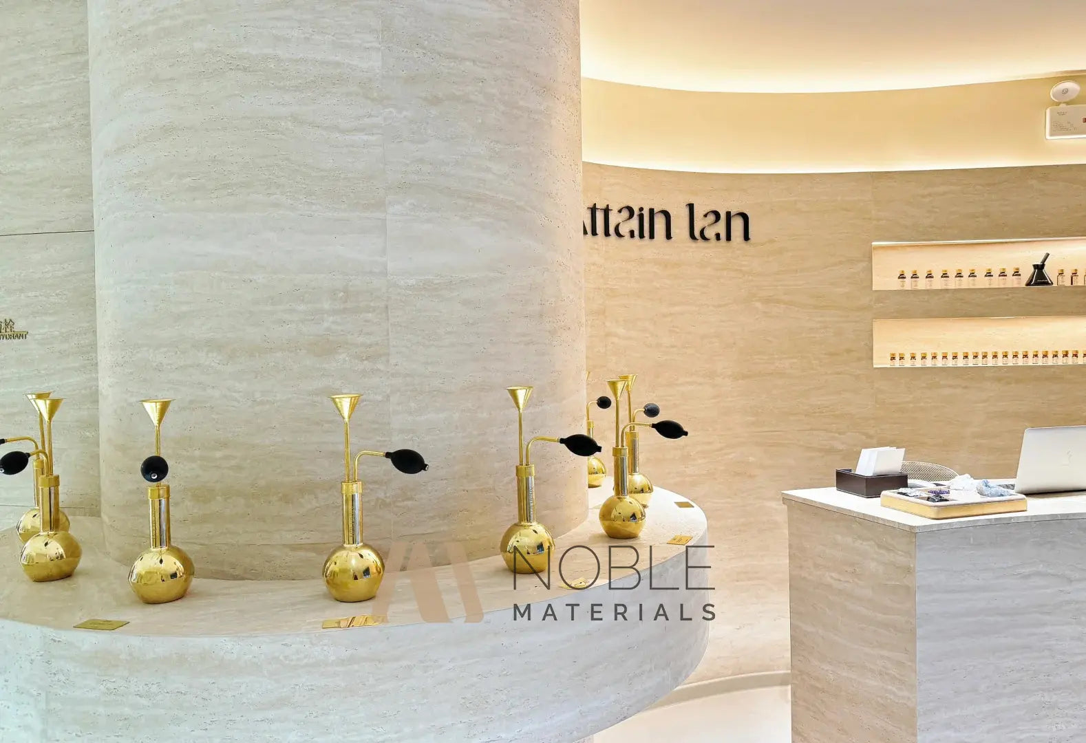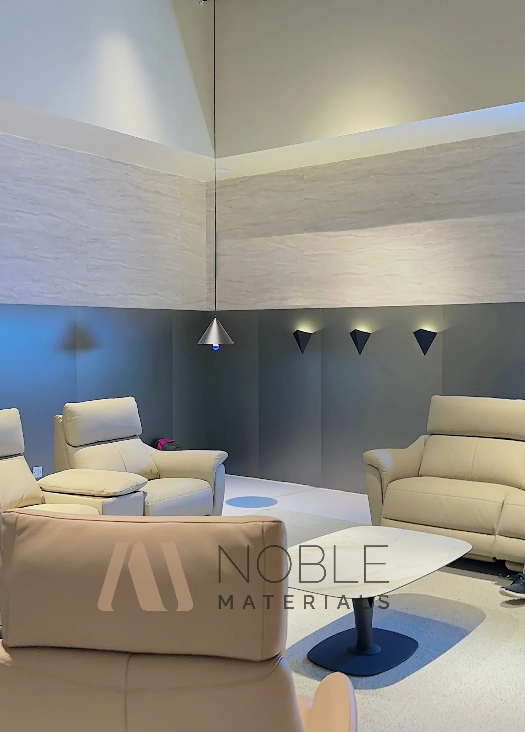 Dun, licht en flexibel steencomposiet paneel in travertijn look.