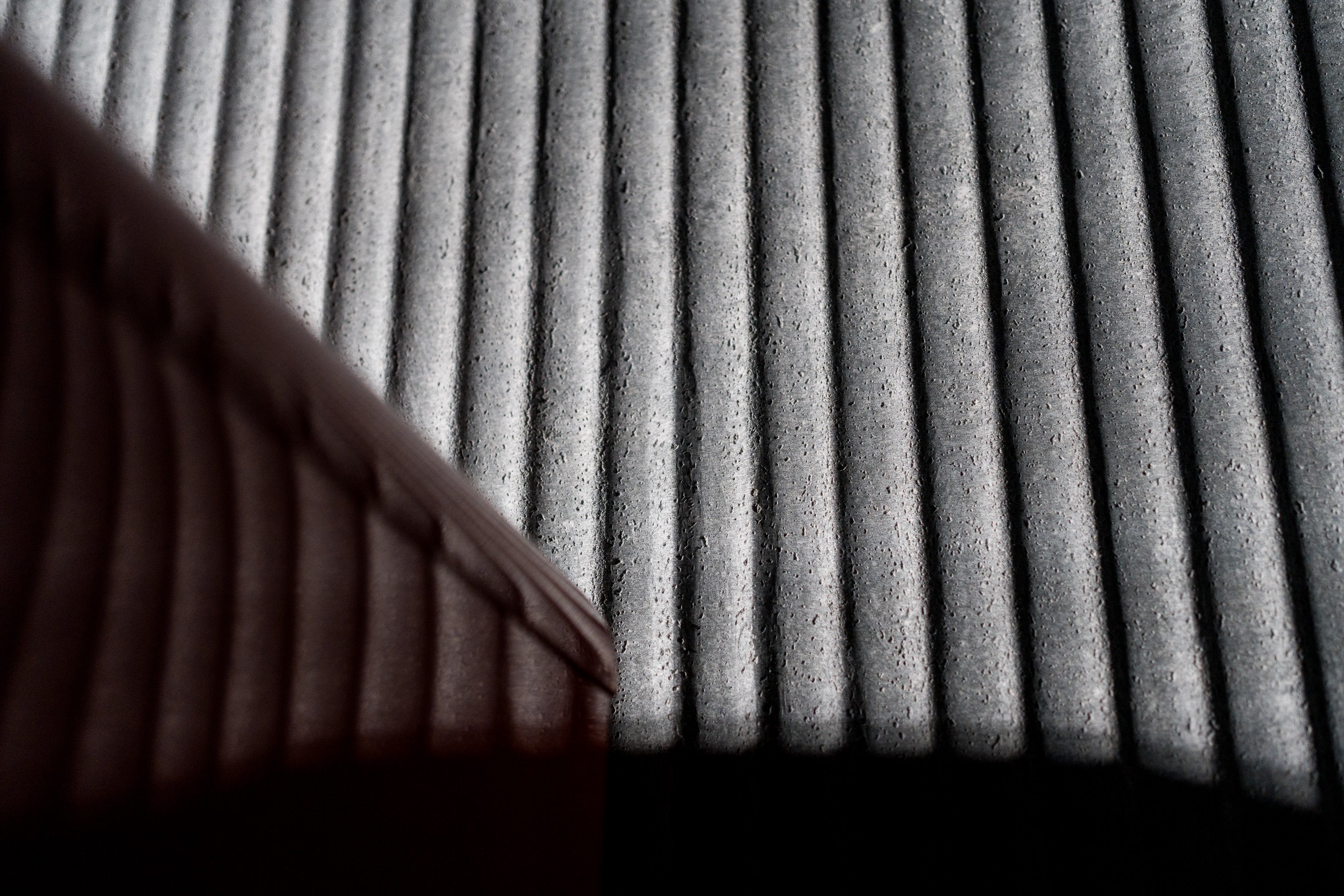 Dun, licht en flexibel steencomposiet paneel met reliëfstructuur.
