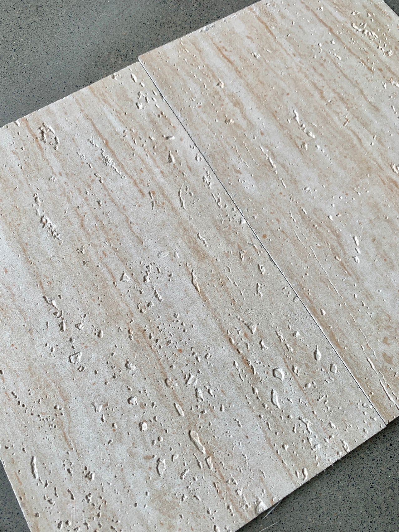 Dun, licht en flexibel steencomposiet paneel in travertijn look.