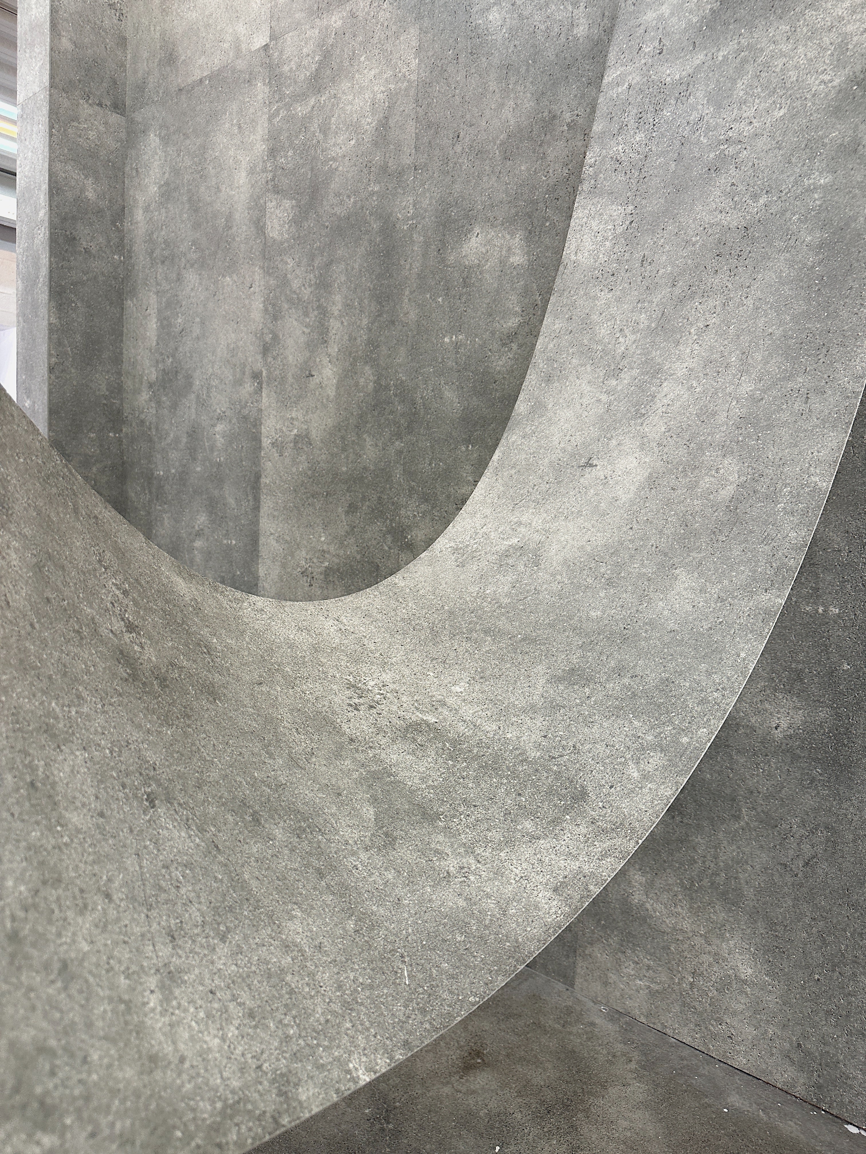 Dun, licht en flexibel steencomposiet paneel met beton look.