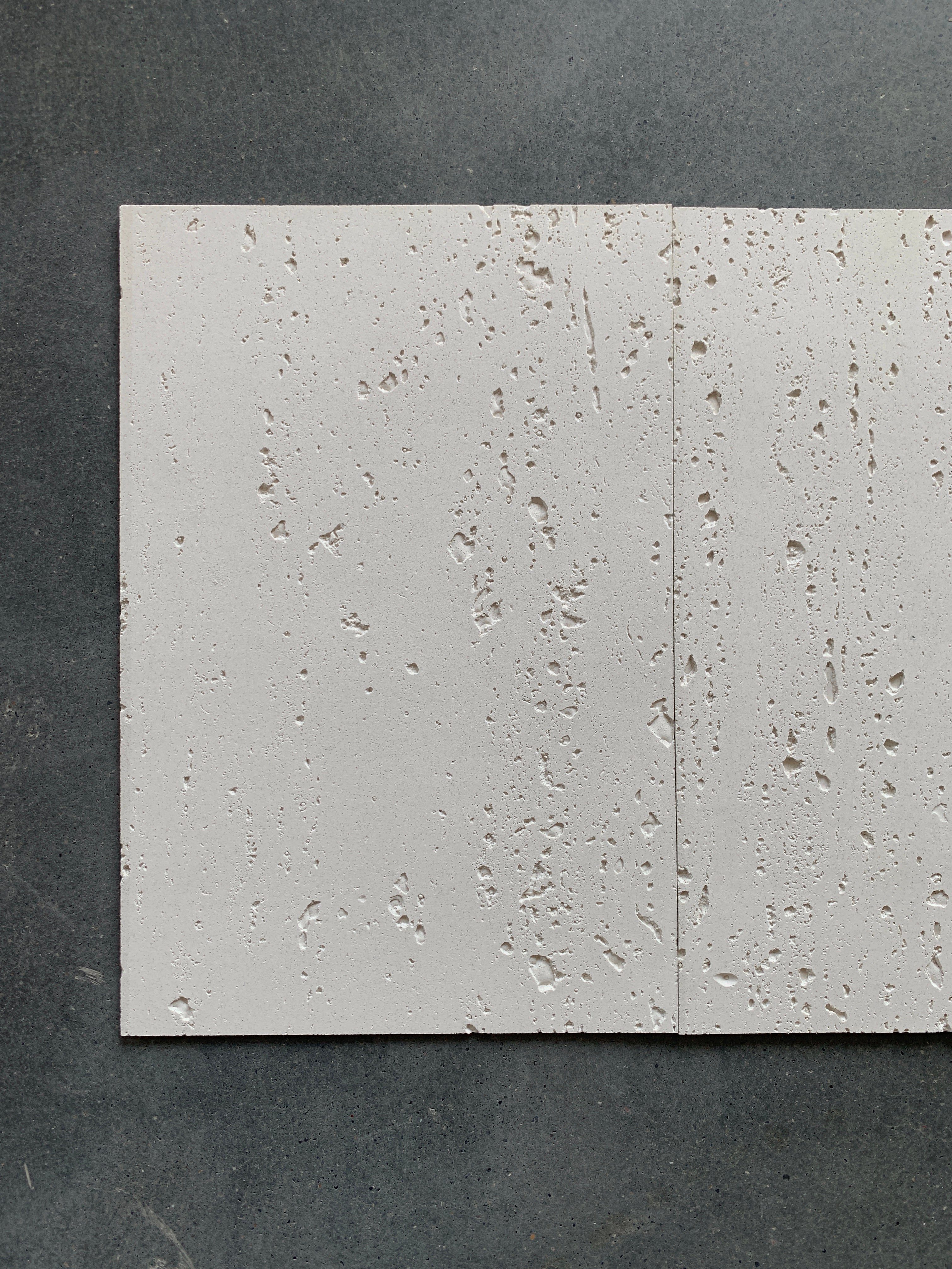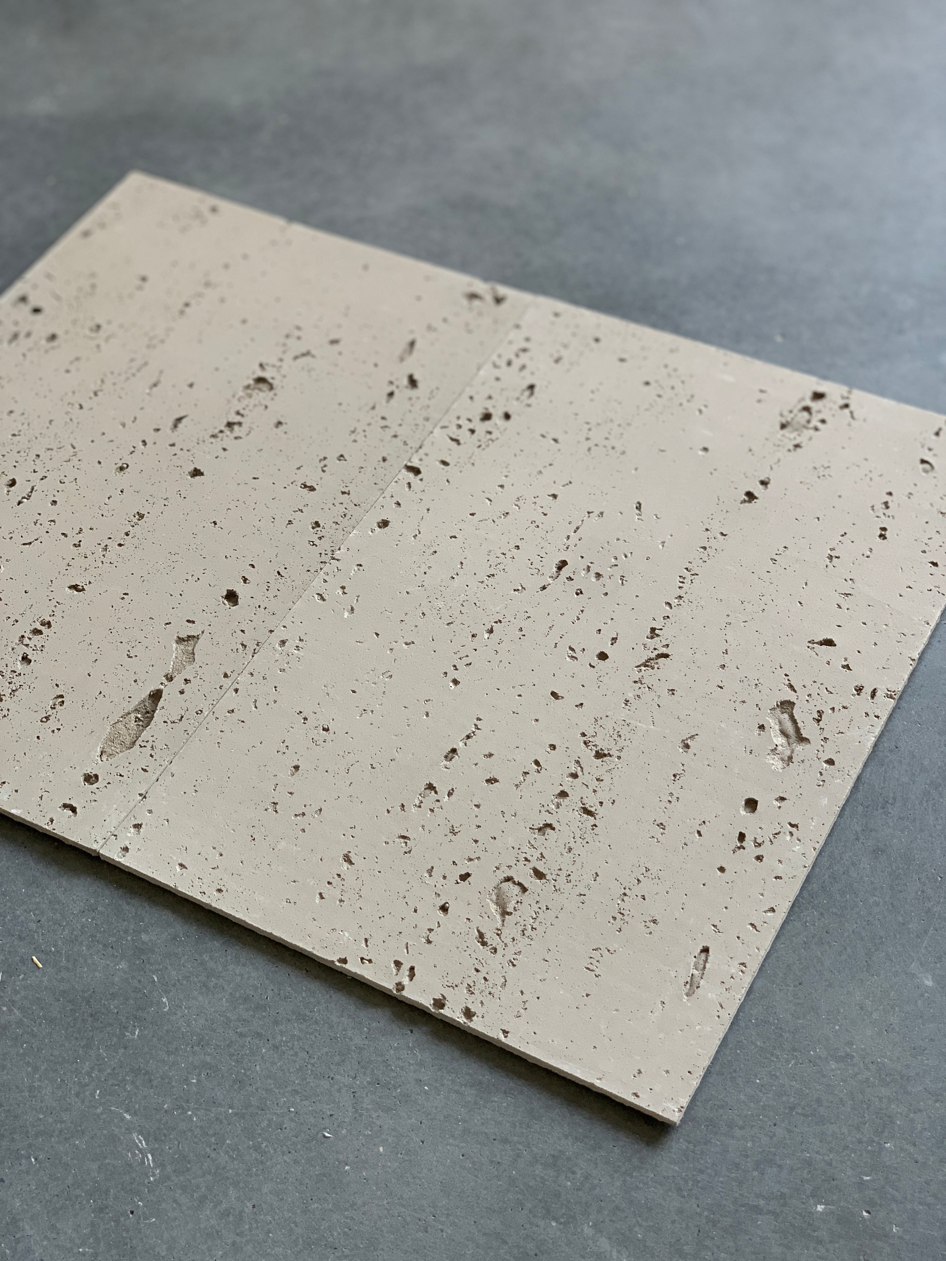Dun, licht en flexibel steencomposiet paneel in travertijn look.