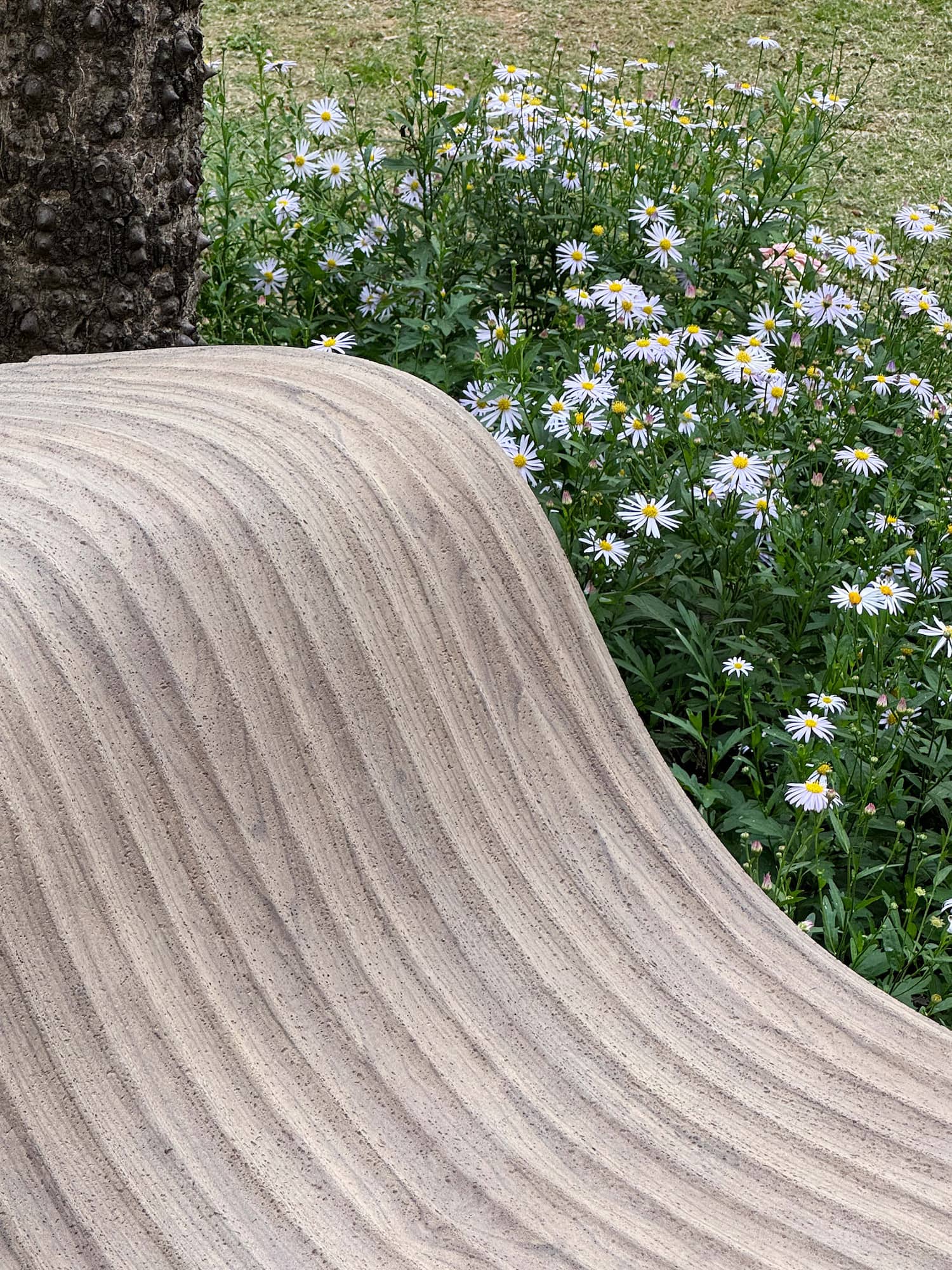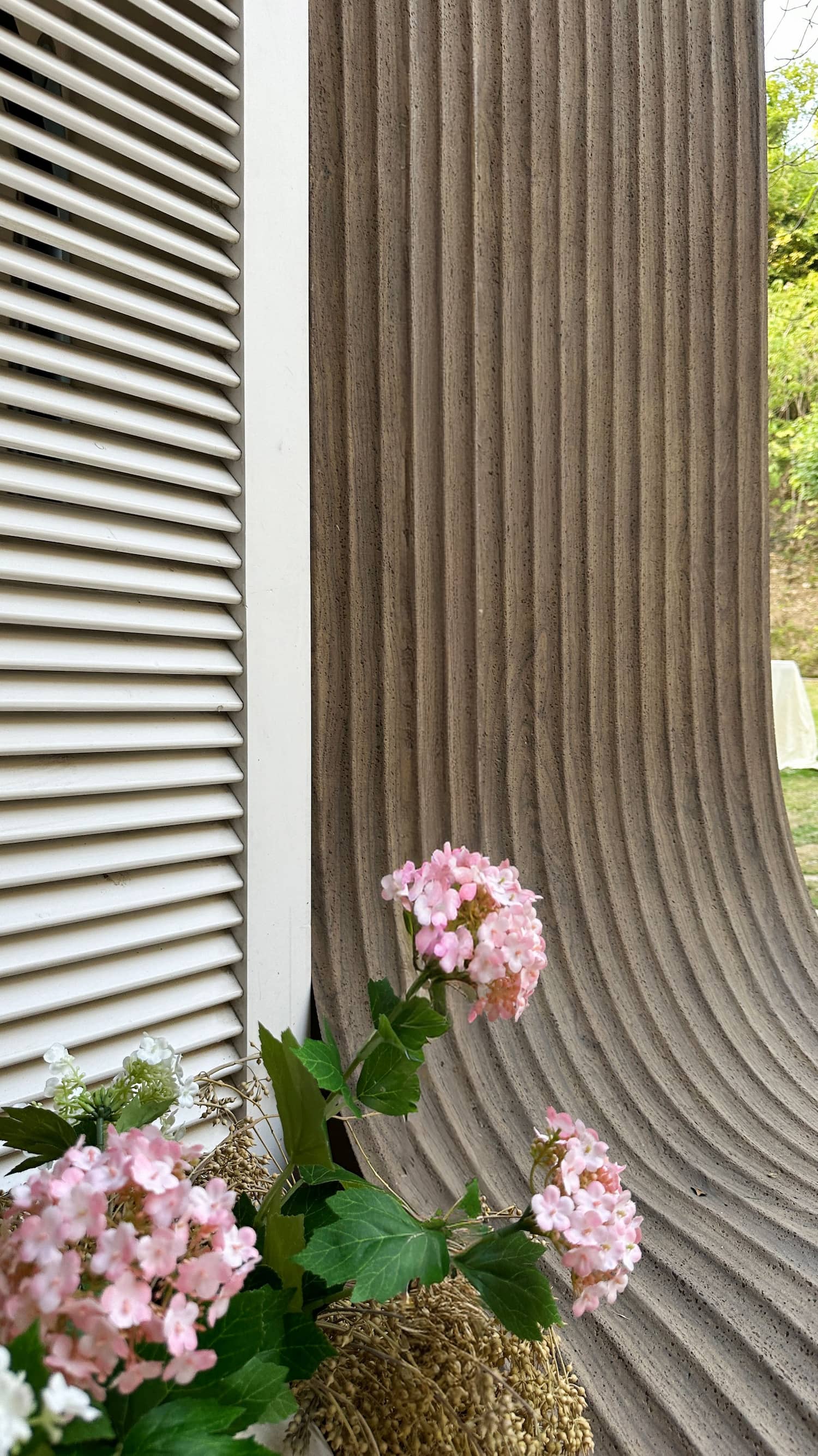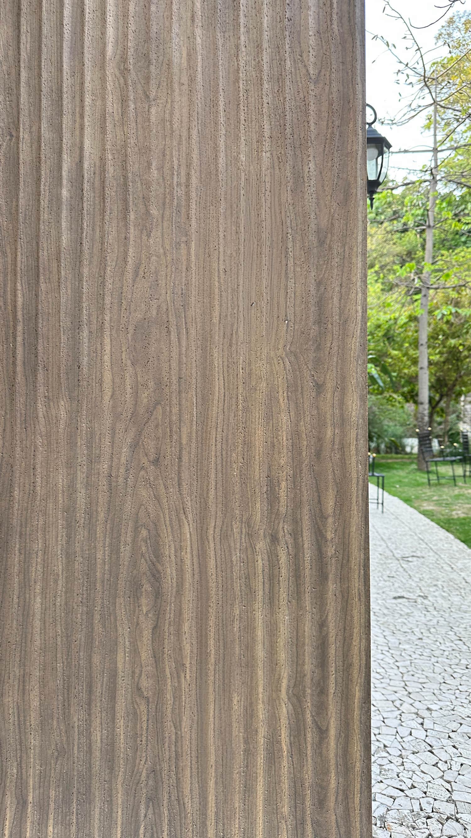 Dun, licht en flexibel steencomposiet paneel met geribbeld hout look.